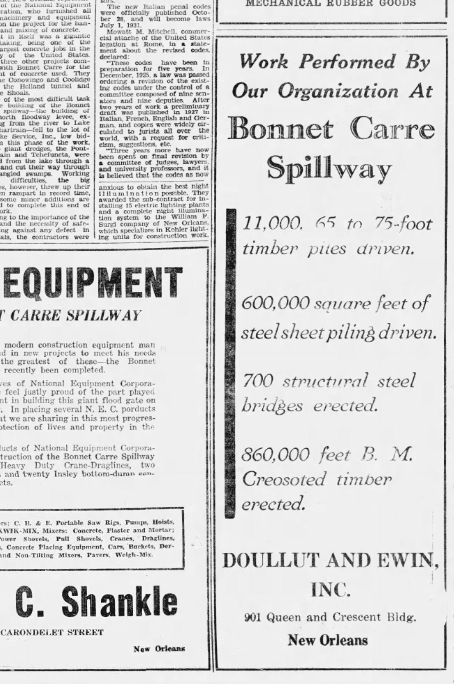 Founded in 1925 in New Orleans by James P. Ewin and Paul Doullut, the firm began with shipbuilding-related work at the Port of New Orleans before expanding into aviation, flood control, and major infrastructure projects, including the Mobile Bay Causeway. Early growth led to landmark projects such as Sugar Bowl Stadium and the Louisiana State Capitol.